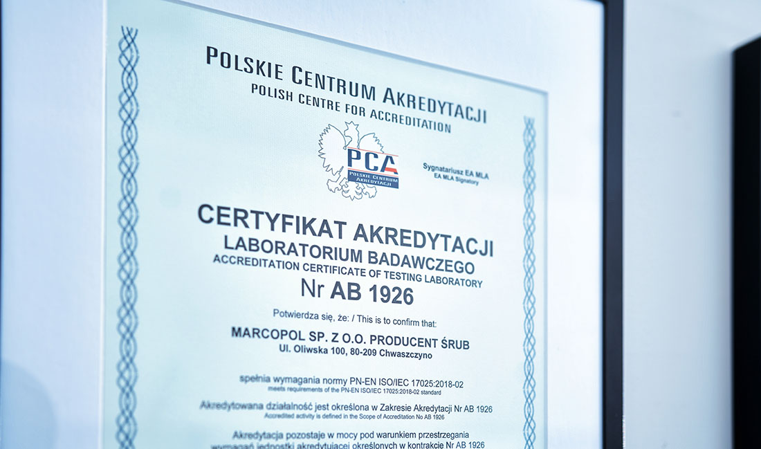 Lenkijos akreditacijos centro (PCA) akreditaciją, patvirtinančią atitiktį ISO/IEC 17025:2017 – svarbiausiam tarptautiniam standartui, nustatančiam tyrimų laboratorijų kompetenciją.